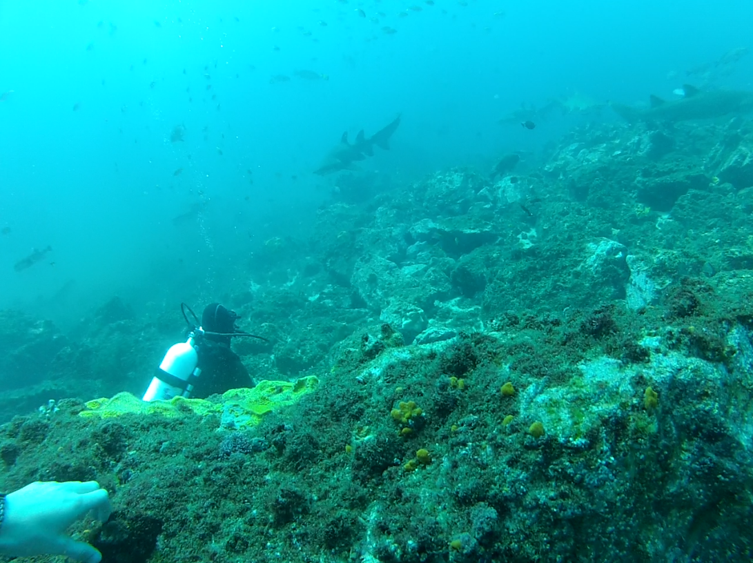 A. Impossible to tell, there’s more behind the camera! Posted on September 27, 2012 | 1091 × 816 | Posted in Return to Swimming with sharks! ← Previous Next → Q. How many sharks are around us? Post a comment or leave a trackback: Trackback URL.